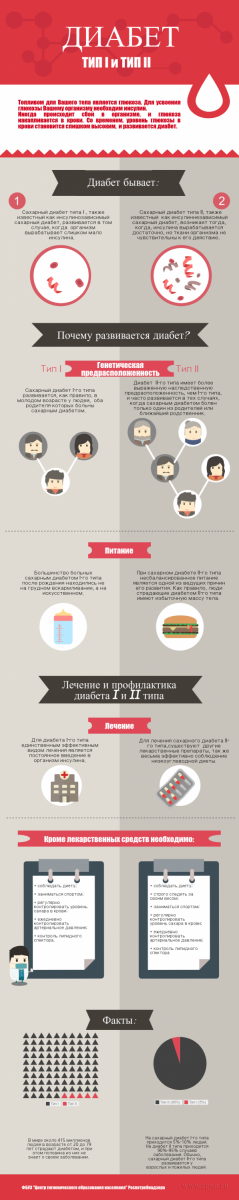 Сахарный диабет – не инфекция. Заразиться им нельзя. Но предрасположенность к сахарному диабету передается генетически. Риск заболеть выше у тех людей, чьи близкие кровные родственники больны диабетом.