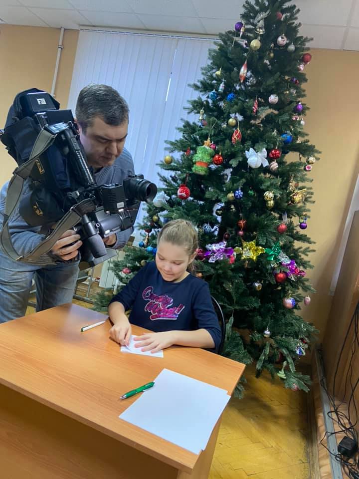 Пока родители, бабушки или дедушки получают консультацию специалистов в общественной приемной, дети могут собственноручно написать письмо новогоднему волшебнику. Маленькая Аня вместе с дедушкой и братом одна из первых пришла отправить свои пожелания.
