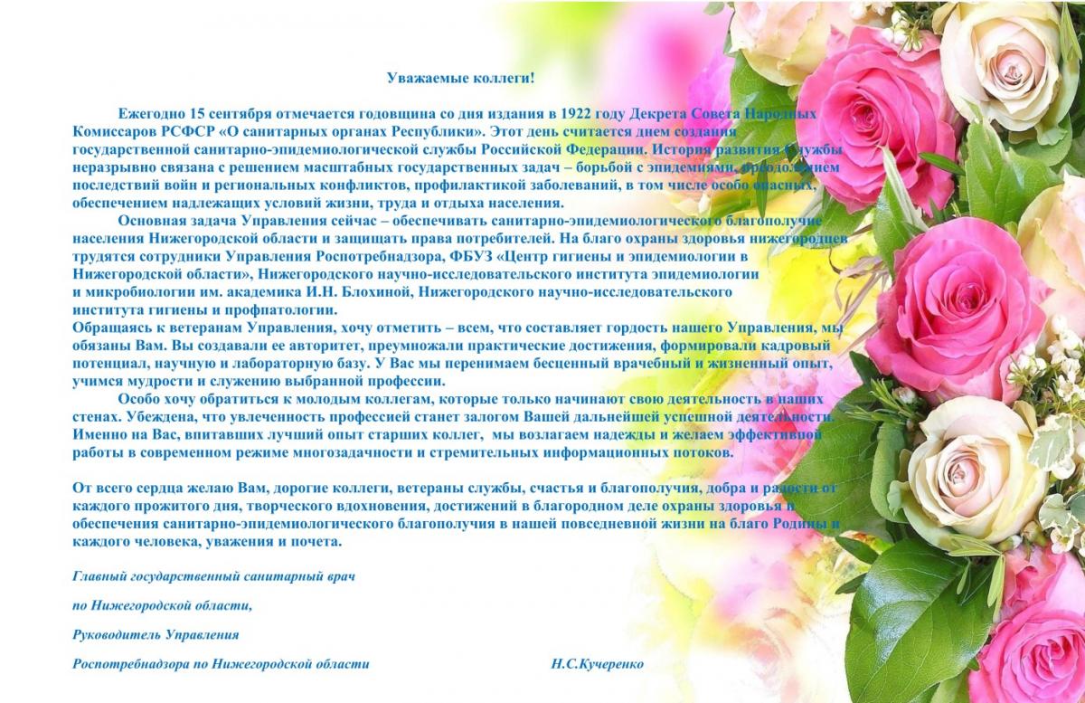 Поздравление Руководителя Управления Роспотребнадзора по Нижегородской области Кучеренко Наталии Сергеевны с 95-летием со дня образования в России государственной санитарно-эпидемиологической службы