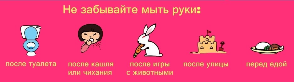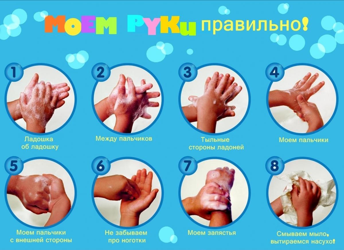 Большинство инфекций возникает потому, что люди не моют руки. А мыть их нужно обязательно перед едой и после еды, после посещения туалета, после контакта с животными или больными людьми, после прогулки, после проезда в транспорте, после чихания, перед приготовлением пищи, после контакта с животными, перед приготовлением еды и сервировкой стола. Из-за того, что люди редко моют руки, микробы скапливаются на дверных ручках, выключателях, поверхностях столов, в ванных и в туалетах, на одежде, на полотенцах и на постельном белье. Именно грязные руки — самая частая причина развития инфекционных заболеваний.