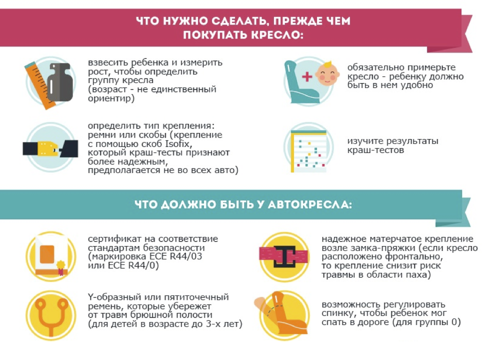 При выборе автокресла, прежде всего необходимо знать возраст, вес и рост ребенка, чтобы правильно определить группу, которая вам подходит, а также тип крепления автокресла, подходящего для вашего автомобиля (штатным ремнем или крепление Isofix).