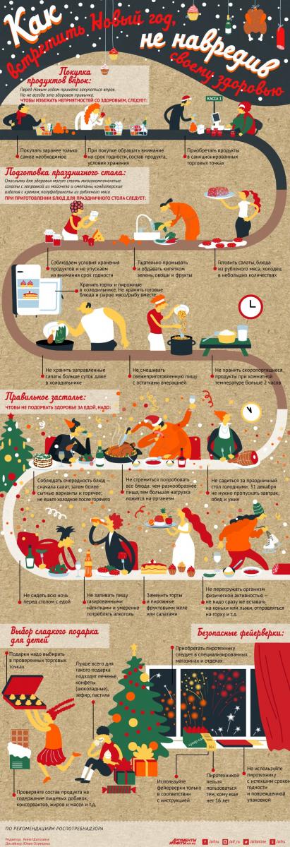 В новогодние дни возрастает риск пищевых отравлений и острых кишечных инфекций. Пищевые продукты являются хорошей средой не только для сохранения, но и для размножения возбудителей острых кишечных инфекций без изменения внешнего вида и вкуса продукта.