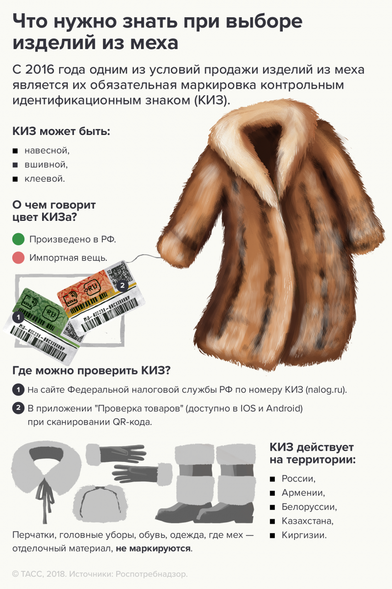 Правила продажи меховых изделий предусматривают обязательную маркировку изделий из натурального меха специальными контрольными (идентификационными) знаками — КИЗ.