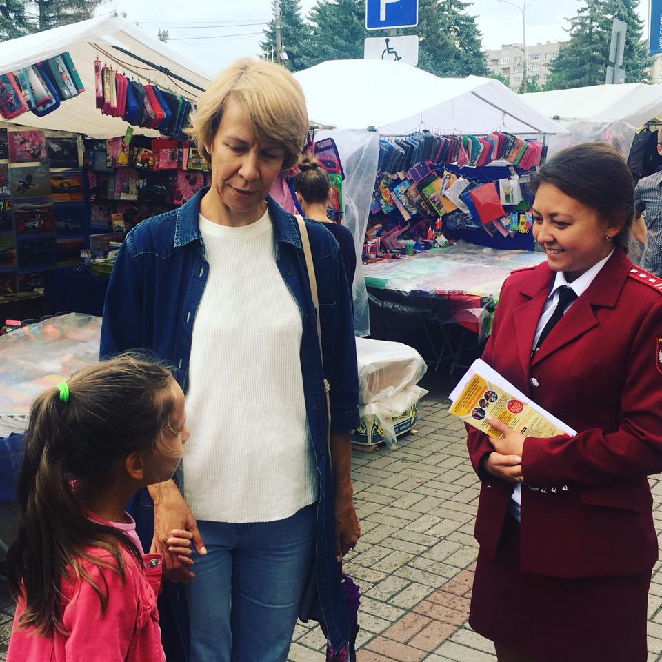 Фотоотчет - Управление Роспотребнадзора консультирует родителей по выбору школьных принадлежностей на школьном базаре