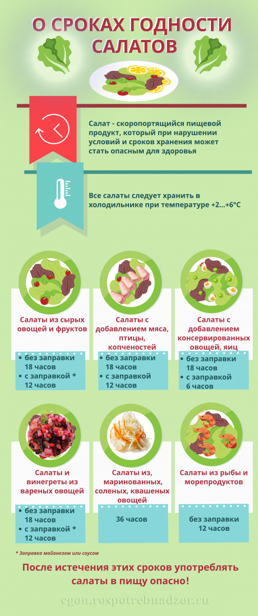 ВНИМАНИЮ ПОТРЕБИТЕЛЯ: Рекомендации о сроках годности салатов