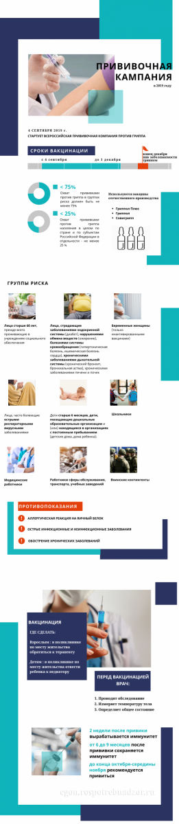 Взрослое работающее население, относящееся к профессиональной группе риска (медработники, работники образовательных организаций, транспорта, коммунальной сферы, предприятий птицеводства, свиноводства, зоопарков и др.) вакцинируются против гриппа по месту работы при предоставлении руководителями учреждений и предприятий пофамильных списков своих сотрудников в территориальную поликлинику по месту своей деятельности.