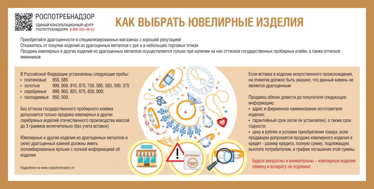 Роспотребнадзор напоминает, чтобы правильно сделать выбор ювелирного украшения, необходимо быть внимательными и приобретать изделия в специализированных магазинах с хорошей репутацией.