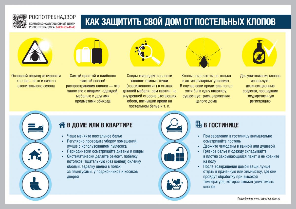 Необходимо регулярно проводить уборку помещений, лучше с использованием пылесоса, часто менять постельное белье, сразу стирать его, не держа в емкостях для хранения; периодически осматривать диваны, ковры и обращать внимание на следы жизнедеятельности клопов: темные точки («засиженности») в стыках деталей мебели, рам картин, на внутренней стороне отстающих обоев, пятнышки крови на постельном белье и т. п.