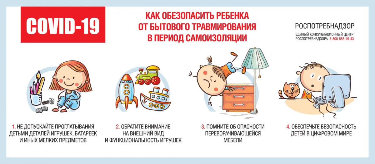 В период самоизоляции, а также карантина в домашних условиях, Роспотребнадзор напоминает родителям о некоторых важных правилах безопасности при организации личного пространства и досуга ребенка.