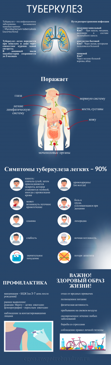 Справочно. Туберкулез-это инфекционное заболевание, вызываемое микобактериями (палочками Коха). Заразиться туберкулезом можно различными путями и не обязательно в результате прямого контакта с больным. Туберкулезом болеют люди различного пола, возраста и социального положения.
